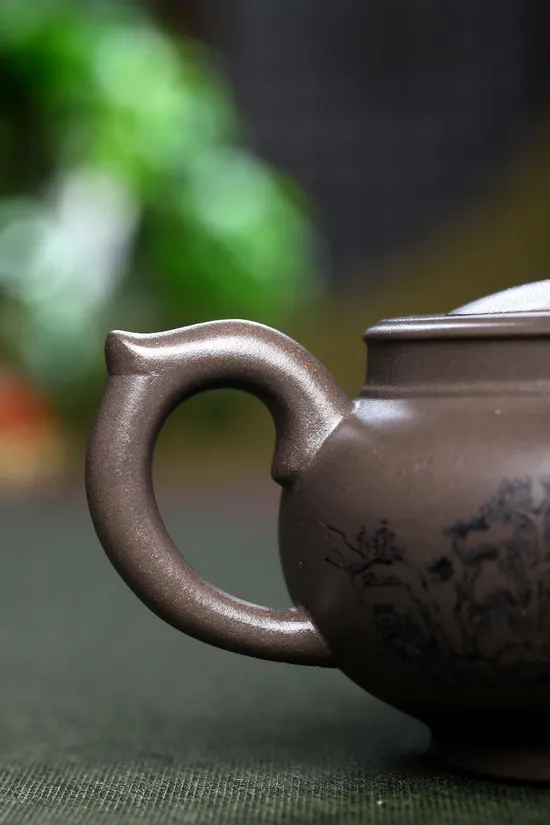 Crafted from Yixing's distinctive bluish-gray clay, this handmade zisha teapot utilizes unique mineral-rich soil that develops fine porosity during firing. These microscopic pores enable optimal temperature regulation and tea aroma preservation. The clay naturally develops a lustrous patina through prolonged use.