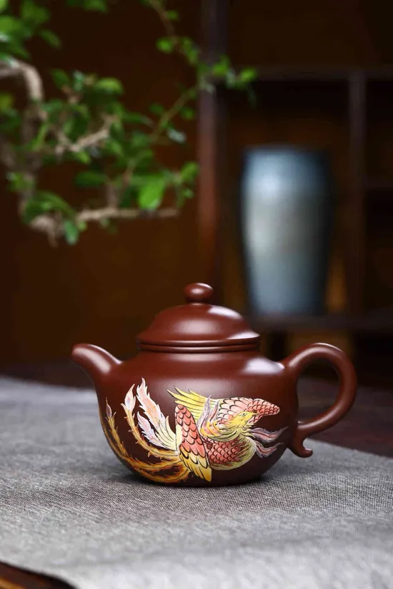 Each handmade Yixing teapot possesses unique imperfections, making every piece irreplicable. For tea enthusiasts, this Chinese Yixing teapot serves both as practical tool and collectible art. The phoenix motif connects users to cultural heritage, transforming daily tea rituals into encounters with ancient symbolism through its gracefully proportioned form.