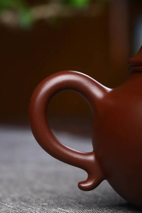 This Chinese purple clay teapot's compact dimensions paradoxically increase technical challenges. Creating fluid lines within limited space demands superior skill. The precisely curved spout ensures drip-free pouring, while the ergonomic handle comfortably accommodates prolonged use.