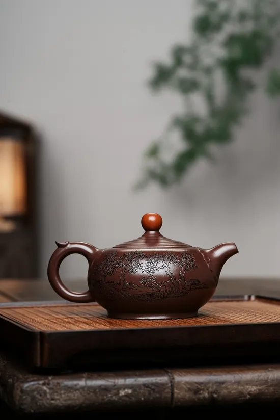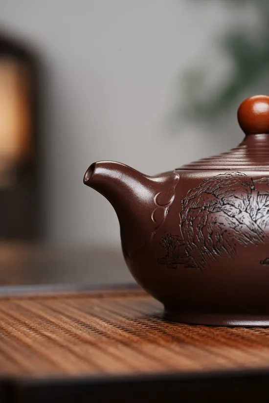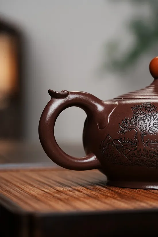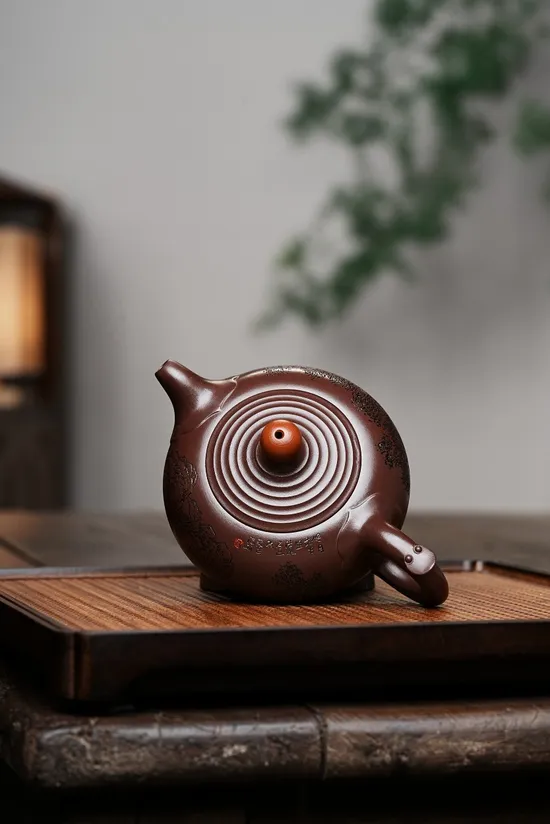 Designed with 220ml capacity ideal for 2-3 tea drinkers, this Yixing zisha teapot features a rotund body and perfectly fitted lid ensuring controlled pouring. The cloud-shaped knob combines practical grip with auspicious symbolism. Delicately carved surface patterns, meticulously etched with specialized tools, enhance artistic value without compromising functionality.