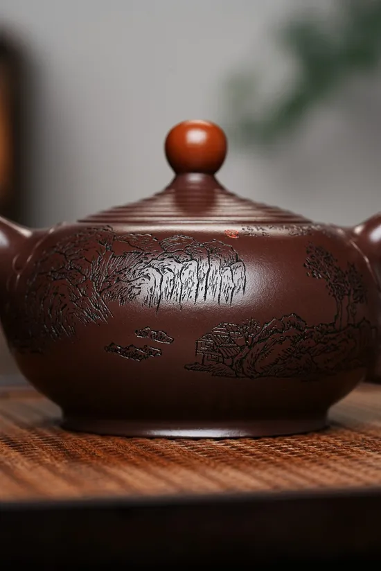 Exquisite Yixing Zisha Teapot: Handcrafted Artistry with Ocean Embraces Rivers Relief Design