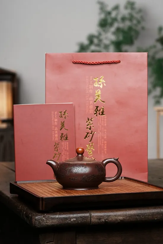 The Yixing zisha teapot stands as a unique representative of traditional Chinese handicrafts. It serves not only as a tea brewing tool but also embodies cultural symbolism blending artistry with practicality. Today's featured purple clay teapot, named "Fortune Beckoning," is entirely handcrafted by national-level craft artist Sun Meiya, showcasing the pinnacle of zisha teapot craftsmanship.