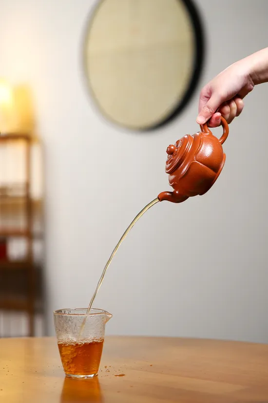 The handmade Yixing teapot demonstrates superb texture through meticulously screened and pounded clay, granting remarkable translucency. When backlit, its walls glow warmly. Tea nourishment gradually develops patina, making the vessel increasingly luminous over time. Over thirty processes create this zisha teapot master piece, starting with three-month clay aging. Yang personally oversees each step: hand-shaping, detailing, and kiln control. Lid-body precision reaches millimeter-level accuracy, ensuring drip-free pouring.