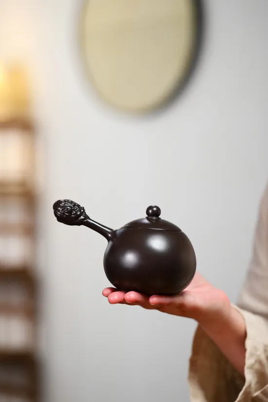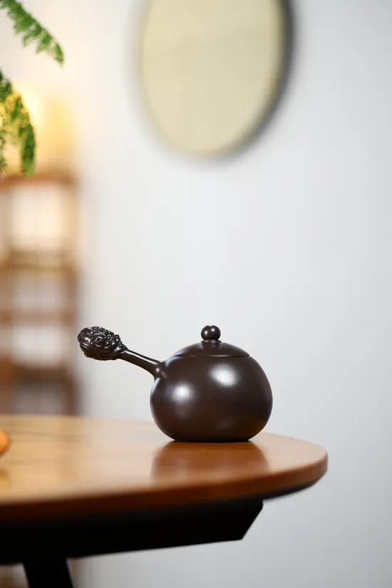 Designed through extensive testing, this 275-milliliter zisha teapot master creation optimally serves 2-3 people. Its classic "eagle beak" spout ensures smooth pouring without dripping, while the lower-centered gravity design guarantees steady handling. The rounded contours promote comfortable use during tea ceremonies.