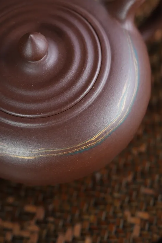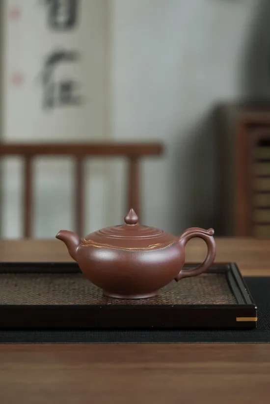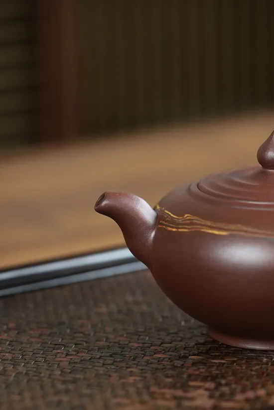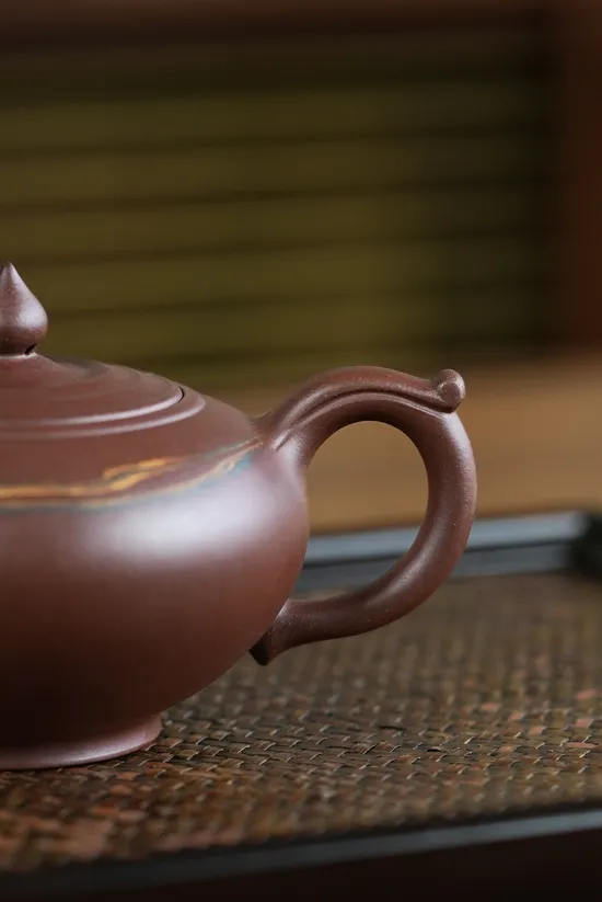 The body adopts traditional circular design allowing tea leaves to fully expand during brewing. The upward-curved handle provides secure grip and comfort. The press-fit lid technique ensures perfect seal with the pot mouth, preventing leaks. Observing the lid top reveals recessed line decorations adding dimensional aesthetics.