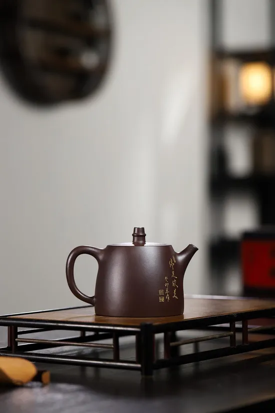 Handcrafted Zisha Teapot blends Han Tile artistry with Benshan clay for refined tea brewing.