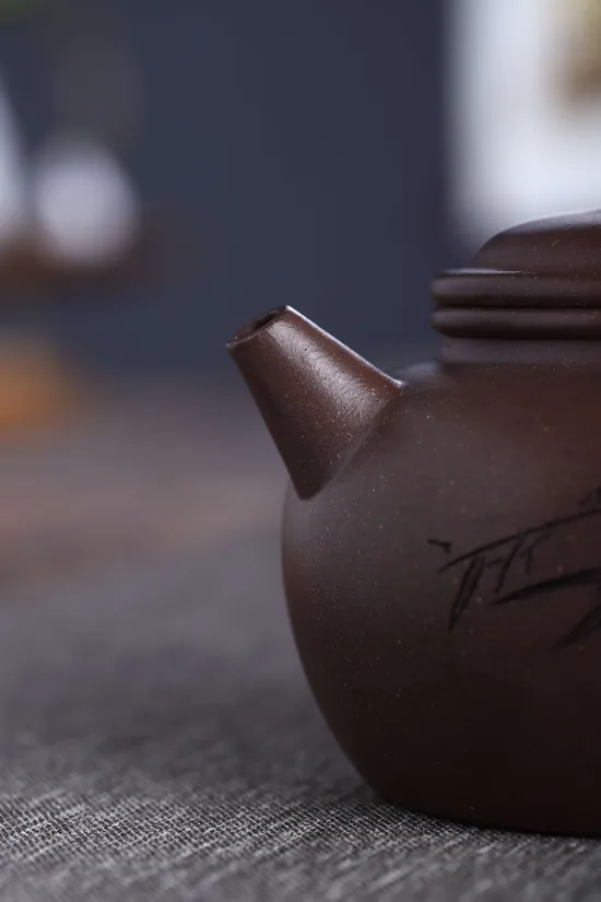 The lid-body integration demonstrates masterful engineering through interlocking "mother-child line" grooves that maintain perfect seal even when inverted. The elevated lid crown adds dimensional sophistication, highlighted by an innovative annular knob with central airflow channel - an unprecedented design in zisha history combining functionality with visual appeal.