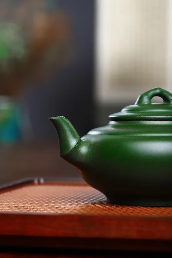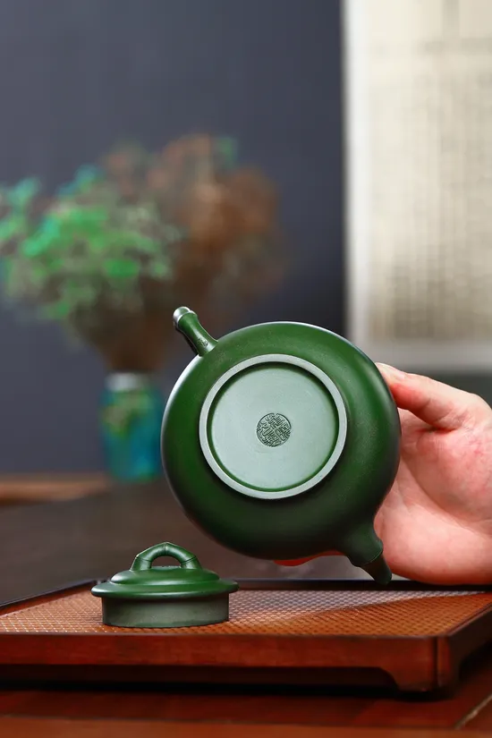 Crafted from rare green clay - an exceptionally scarce material among zisha raw minerals - this handmade Yixing zisha teapot displays unique celadon tones. The clay develops warmer luster through firing and deepens in chromatic richness with prolonged use. Its 70-milliliter capacity makes it perfect for solo tea sessions or sharing with one or two companions, allowing precise control over infusion strength.