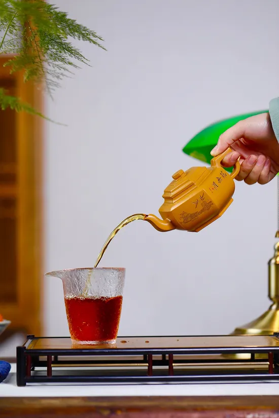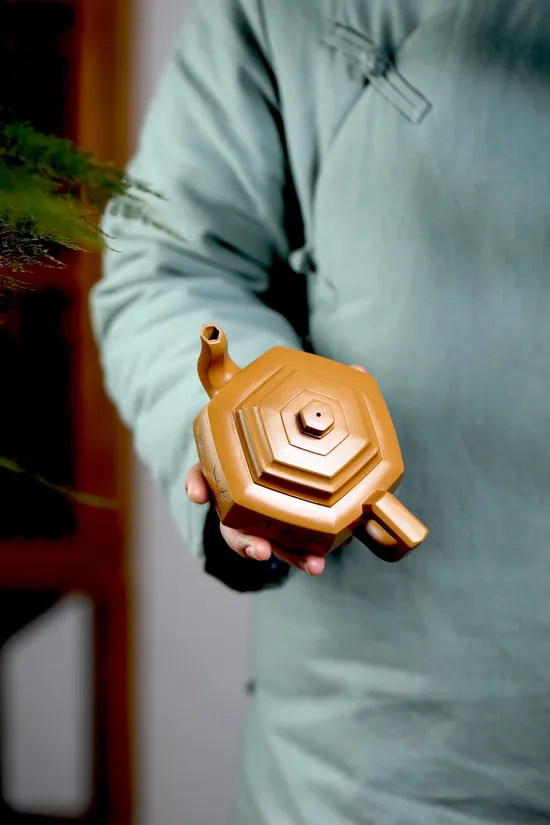 The geometric design showcases exquisite craftsmanship. "Liufang" refers to six precisely symmetrical facets requiring millimeter-level spatial calculation. The lid forms airtight seal with the rim, preventing leaks even when full. The spout's carefully calibrated curvature ensures smooth pouring without dripping.