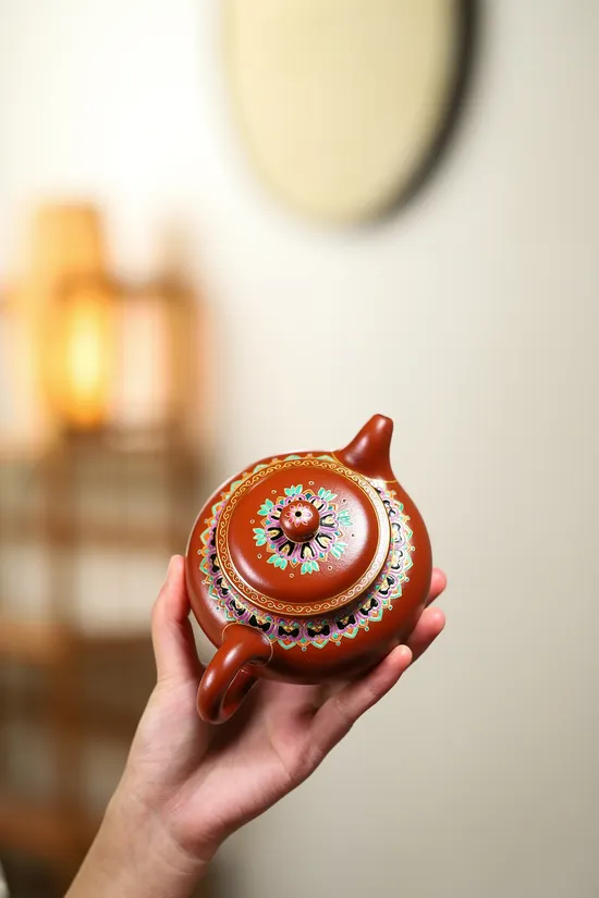 The lid reveals ingenious design - a bud-shaped knob mirrors the blossoming patterns below. As steam rises through ventilation holes during brewing, it creates misty unfolding imagery reminiscent of morning dew on flowers, exemplifying the yixing zisha teapot's perfect balance between utility and artistry.
