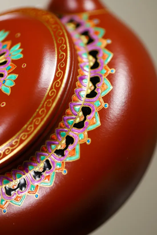 Traditional enamel painting technique adorns the purple clay teapot surface with three-dimensional floral patterns of peonies and lotuses. Skilled artisans achieved remarkable depth through layered pigmentation, creating tactile petals that rise subtly beneath fingertips - a perfect marriage of heritage craftsmanship and contemporary decoration.