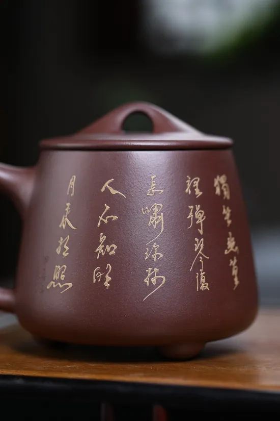 This zisha teapot features an improved version of the classic Stone Dipper shape. Its stable triangular structure stands firmly on three leg supports. The carefully angled spout ensures smooth pouring without dripping, while the precision-fitted lid remains stable even when fully filled, demonstrating Yixing teapot craftsmanship.