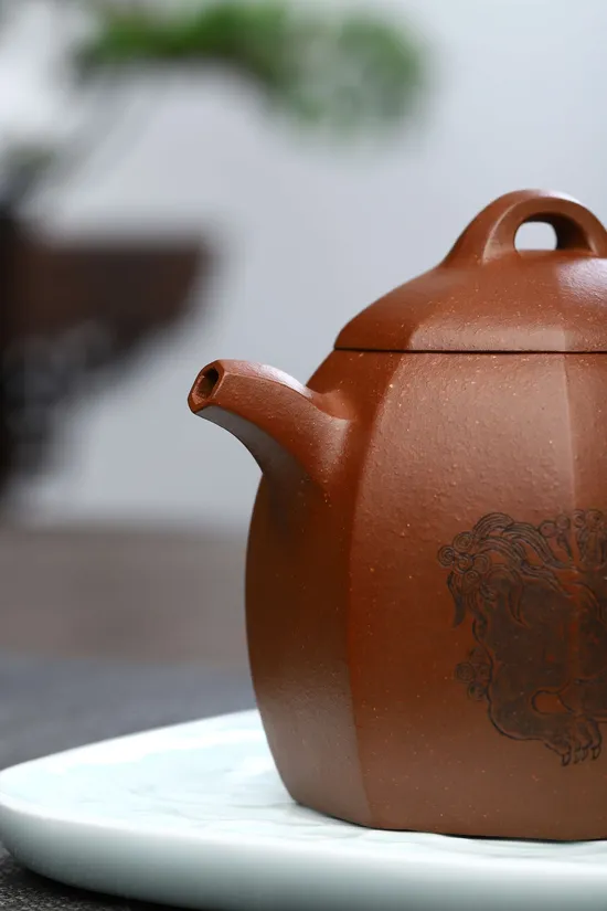 Liufang Qinquan Zisha Teapot: Handcrafted Artistry with Premium Di Cao Qing Clay