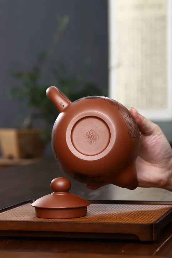 Proper maintenance of this Yixing teapot requires initial tea broth seasoning to absorb aroma. Daily cleaning involves only water rinsing without detergents. Regular drying after use promotes natural patina development, enhancing surface luster over time.