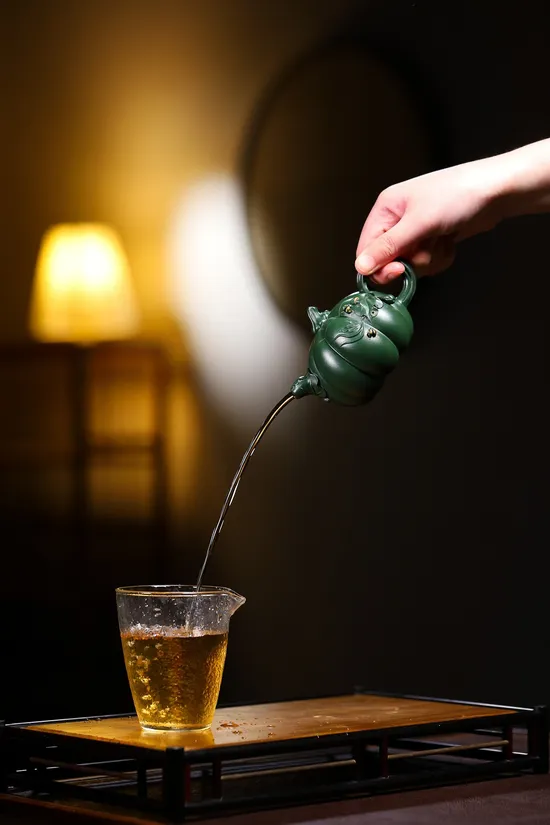 The teapot employs a special green clay formula preserved since China's Republican era. Aged naturally for decades, this refined clay emits a soft matte luster under light, reminiscent of early spring foliage. High-temperature firing activates mineral variations in the clay, creating unique green gradient patterns on each piece.
